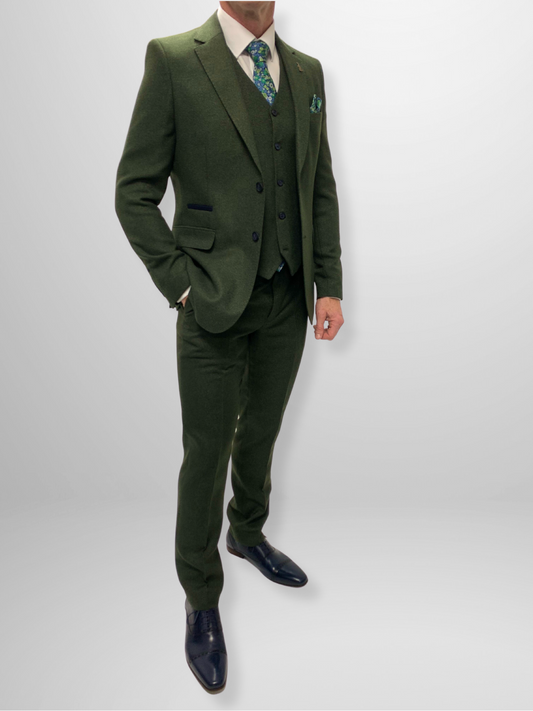 Textured 3pc Suit - Olive