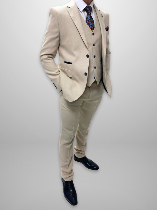 Textured 3pc Suit - Stone