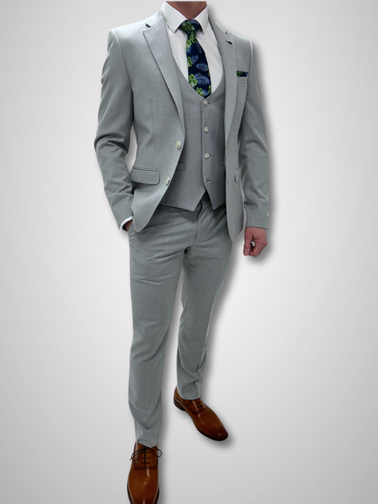 Textured 3pc Suit - Silver Stone