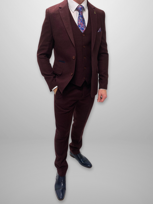 Textured 3pc Suit - Burgundy
