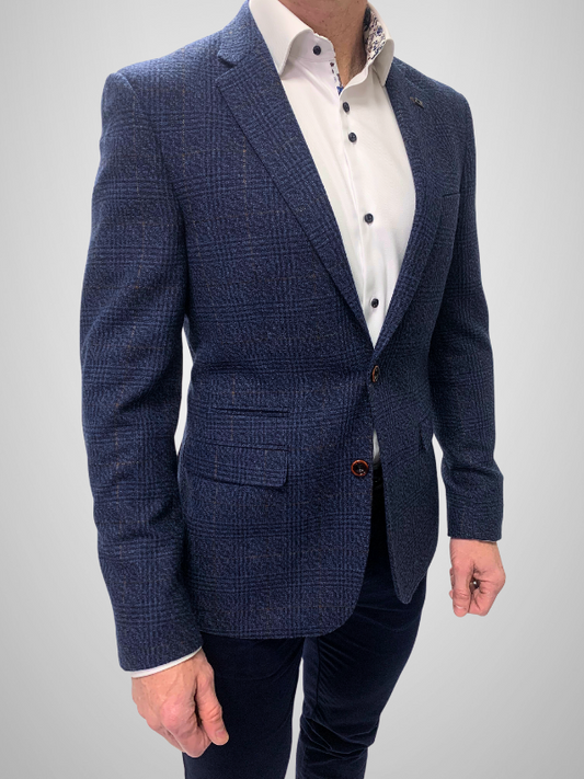White Label Jasper Checked Wool Blazer - Dark Blue