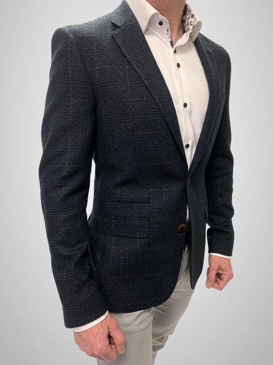 White Label Jasper Checked Wool Blazer - Dark Navy & Green